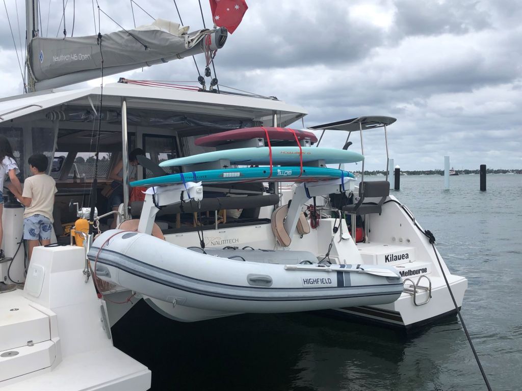 • Toys – buy 2 SUPs and 1 kite foil board and install carrier system above dingy davits