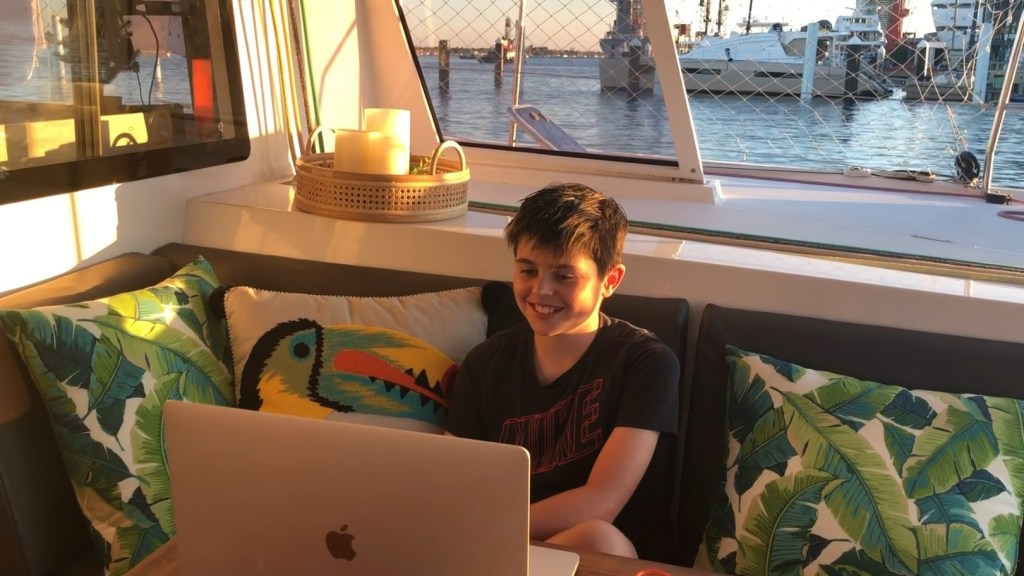 On top of this Lottie had started the boat-schooling programme.  The kids’ school, St Josephs, had very kindly offered us access to their teaching resources and the ability to download several weeks of lessons in a blocks at a time that suited us (in terms of having wifi coverage).  Charlotte and the kids took to this with gusto (6 months of home schooling during COVID finally paying off!) and the highlight was a live hook up with each of their classes and teachers to have a Q&A session with the whole class.  What have you been up?  Fixing the boat.  Can you still play X-Box?  Of course.  That sort of thing.