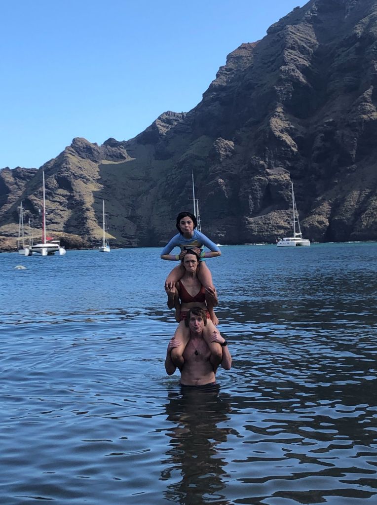 Nuku Hiva would be where Tom and Ceara would leave us after almost three months on board. There was still time for one more adventure before their flight and we went around to Danny’s Bay (named after a local) where we hiked up to another gobsmackingly beautiful waterfall for a swim. You couldn’t stay still for too long or the freshwater lobsters would have a nibble at your dead skin or a slimey eel would come and check you out. Back at the anchorage there was a beautiful tiny village where the locals put on a 3 course lunch of local Marquasian food, my favourite being Poisson Cru, raw tuna marinated in coconut milk. As we left they gave each of us a pamplemousse to take home. More fruit for the nets!