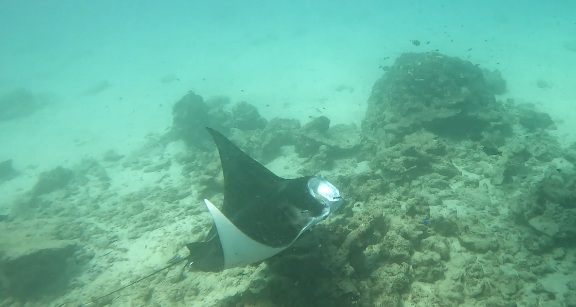 No sooner had we all donned masks and snorkels and jumped in, all thoughts of domestic chores were forgotten when one and then two manta rays glided over to check us out. These beautiful creatures are so mellow and graceful and I originally thought them to be exceptionally rare although I was later proved wrong on this as we saw them in several places in the Marquases. They would circle underneath the boat and then rise up to the surface to swoop around alongside us, clearly curious in our weird bodies with no wings or horns stuck out the side of our heads. I decided there and then that IF I was to get a Marquesan tattoo it would be in the form of a manta ray.