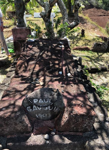 Hiva Oa was our first proper town and after anchoring in the harbour we made the 2 kilometre walk into town with first stop being the post office for sim cards so we could all catch up on news, sports results and emails. Next was a visit to Paul Gaugin’s grave where we learnt the life story of this gifted but seriously troubled artist and finally it was a big supermarket shop to get some much needed fresh food, our first for almost a month.