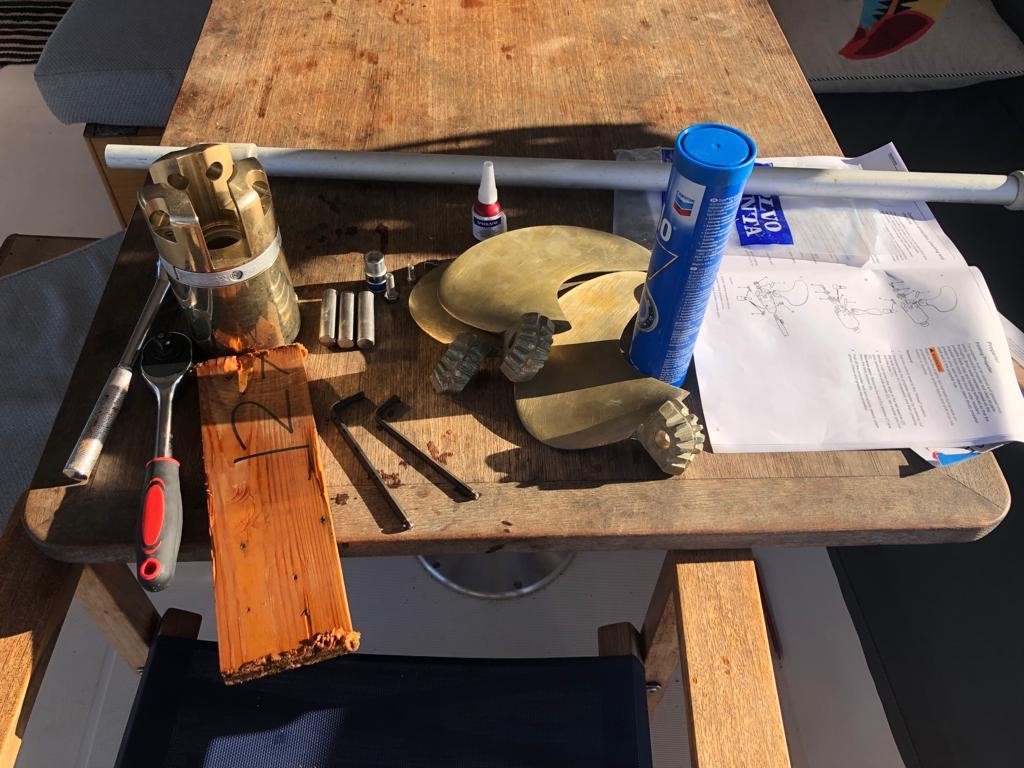 In the afternoons we would catch up with the Cheesies for fun and games in the pool, on the beach or, dare I say, in the bar but I did squeeze in the odd boat job as well. I took the opportunity of having access to dive gear and being in a marina to install the second folding prop which had been flown in, this time from Australia. Charlie sat on the dock with an array of tools while I disappeared below in a cloud of bubbles to return a minute or two later handing her something I had removed and requesting a tool or part. Screwdriver, pliers, sledge hammer, that sort of thing. Before long the job was done. I have now installed not one but two folding propellers underwater. Yet another skill I will have no use for on land but I was proud of myself just the same.